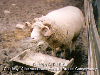 Dorset Horn SheepThe Dorset is an ancient breed likely developed from white faced, horned, short wooled sheep that thrived in Dorsets are white sheep with open faces and long bodies. Ewes weigh 150–200 pounds, and rams weigh 225–275 pounds. The sheep are avid grazers and use feed well. Ewes are heavy milkers, easily able to raise their own lambs. They have also been used in dairying. Dorset sheep produce between five and nine pounds of medium grade wool per year. In the Horn variety, both ewes and rams carry horns. Ewes’ horns are light, curving forward neatly; rams’ horns are heavy and spiral out as well as curving forward. The single most important attribute of the Dorset is its extended breeding season, also called nonseasonal or aseasonal breeding. This characteristic, not found in any other British breed, is an important performance trait. Sheep of most breeds are seasonal breeders, mating in the fall and producing lambs in the spring. In contrast, Dorsets can be bred in the spring for production of lambs in the fall. Some ewes will raise two sets of lambs a year, with multiple births not uncommon. Dorsets tolerate heat well, and heat tolerance contributes to Dorset rams’ ability to breed earlier in the season than rams of other breeds. Dorset Horn sheep were imported into the United States about 1860, though the breed did not appear in large numbers until the 1880s. The Continental Dorset Club was organized in 1890. In the early 1950s, a genetic mutation causing polledness occurred in the flock at North Carolina State University. The Polled Dorset variety was developed there. (Polled Dorsets were also developed in Australia earlier in the 1900s, though they originated from the introduction of Corriedale and Ryeland blood into the Dorset Horn.) The first Polled Dorsets were registered by the Continental Dorset Club in 1956, and they have been included in the same flock book with Dorset Horns. The success of the polled variety has caused the Dorset to become the second most popular sheep breed in the United States. Polled Dorset sheep have almost completely eclipsed Dorset Horns, and the latter is experiencing a precipitous drop in registrations. The Polled Dorset and Dorset Horn have diverged somewhat over the past 40 years. Though differences between the populations have not been documented, anecdotal evidence suggests that the intensive selection of Polled Dorsets for early maturation and rapid growth rate may have been made at the expense of selection for nonseasonal breeding, which has declined as a result. Given the possible impact of these changes and the long divergence of American Dorset Horn sheep from other Dorset populations, the Dorset Horn has been included as a conservation priority. Status: See CPL | ||||||||||
